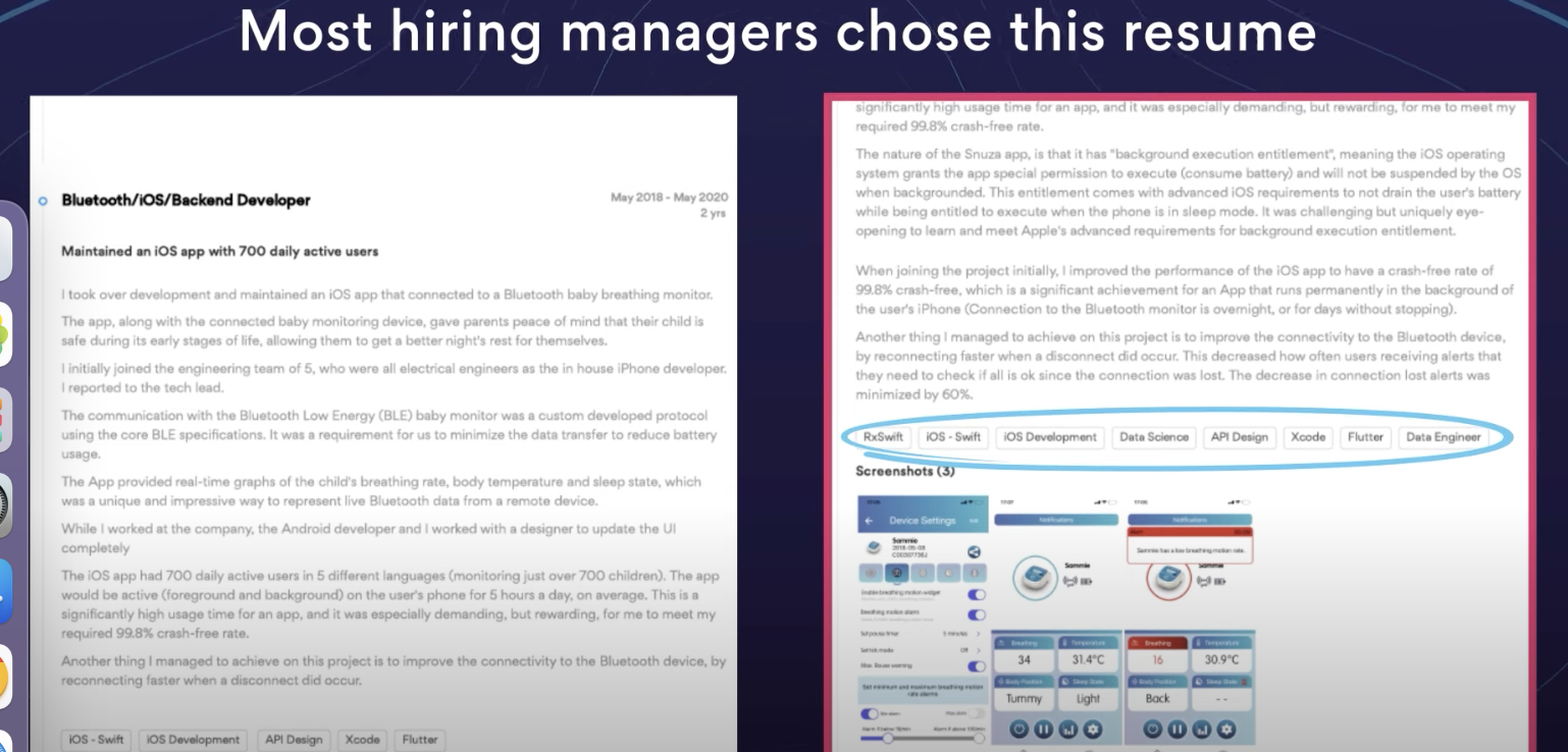 개발자가 뭘 잘하는지 알 수 있었나요? 인사담당자도 마찬가지입니다. 당신은 항상 당신의 특별한 기술에 대해 태그해야 합니다. 당신의 롤이나 어디에 전문가인지 상관없이 말입니다.