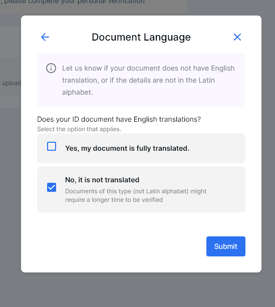 하려면 신분증이 필요합니다. 저는 신분증을 촬영하면 될 줄 알았는데, 한국인에 대해서는 신분증으로 자동 신원확인이 안된다고 나오더라구요. 헐.. 그래서 고객센터에 문의했더니, 친절하게 Manual Verification 방법을 안내해주었습니다.