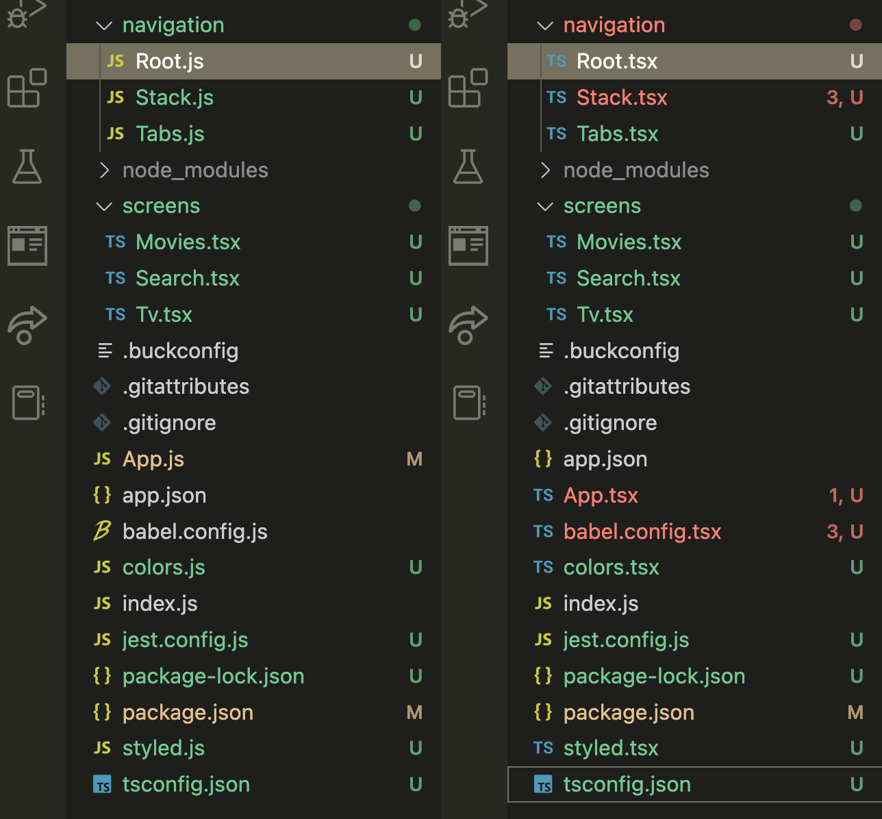 모든 자바스크립트 파일의 확장자를 tsx로 변경 합니다.