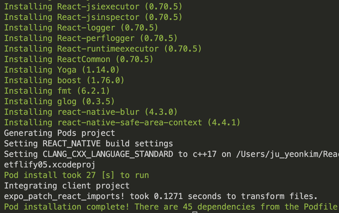 | ** BUILD FAILED ** pod 캐쉬 삭제 후 재설치 /ExpoModulesCore 업데이트 /xcode 다운그레이드 (0) | 2023.01.11 |
