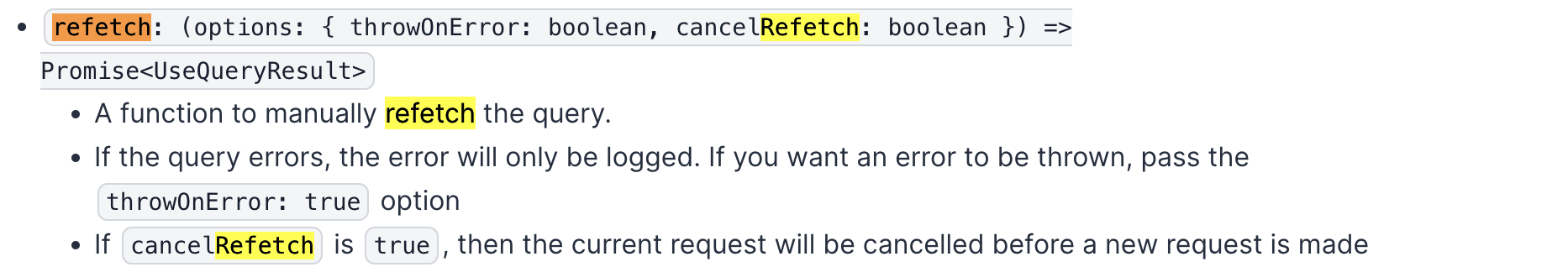 refetch 에 수동으로 refetch할 이름(함수명)을 지정하여 호출하는 시점에 refetch 된다.