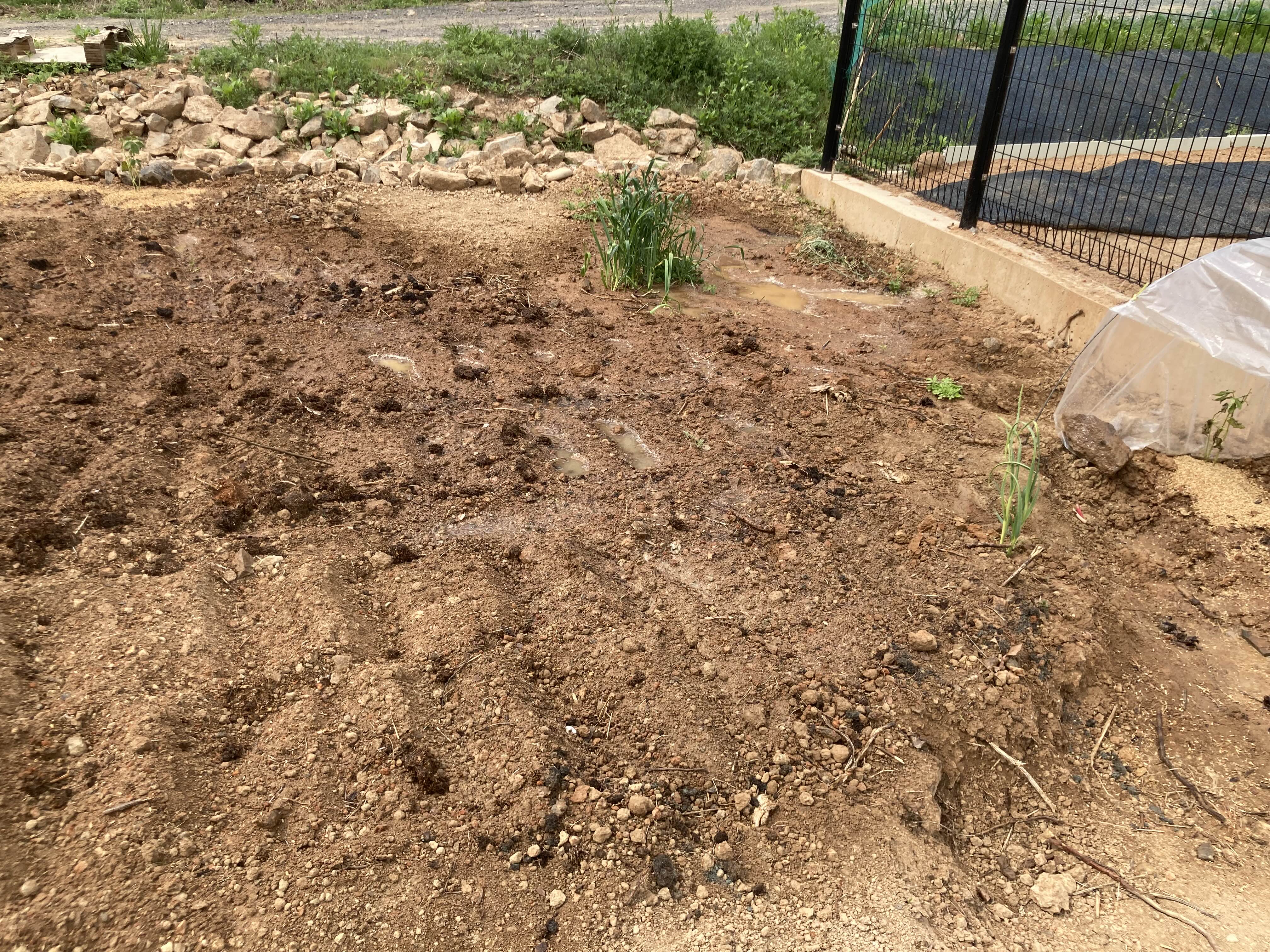 물을뿌리면 고일정도로 배수가 안되는 흙이다. 흙이 물을 머금지 못하니 가뭄이 오면 어쩌나.