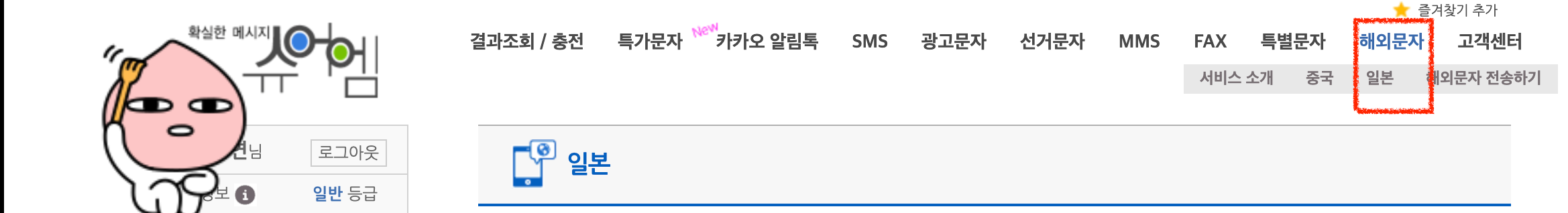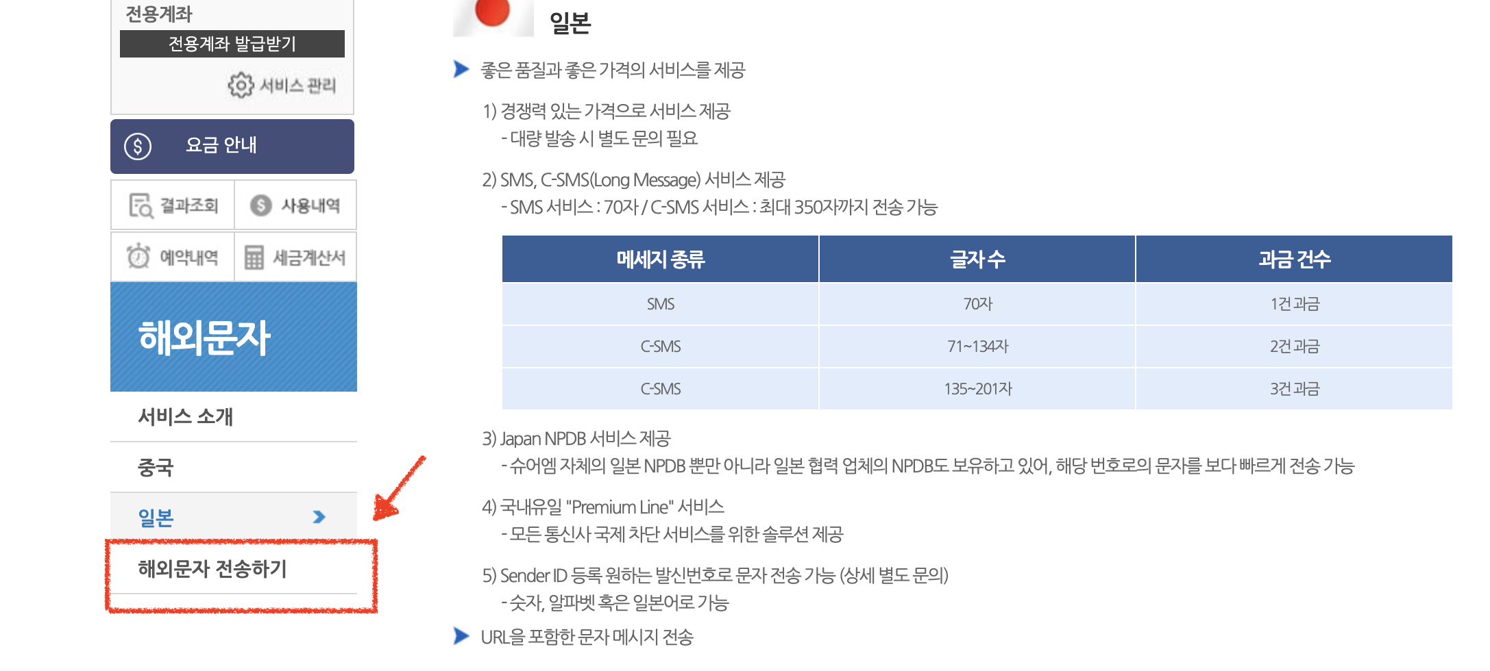 해외문자 발신요금은 일본의 경우 90원입니다. (업체별로 다를 수 있습니다.)