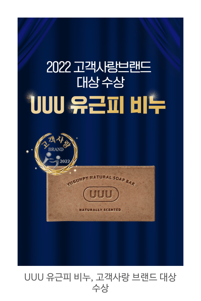 UUU몰의 유유유 비누는 한방 약초인 유근피(느릅나무 뿌리 껍질)와 함께 피부 자극을 완화하는 자연유래 성분 등으로 빠른 피부 개선 효과를 선사하는 점을 높이 평가받아 이번 상을 수상하게 됐