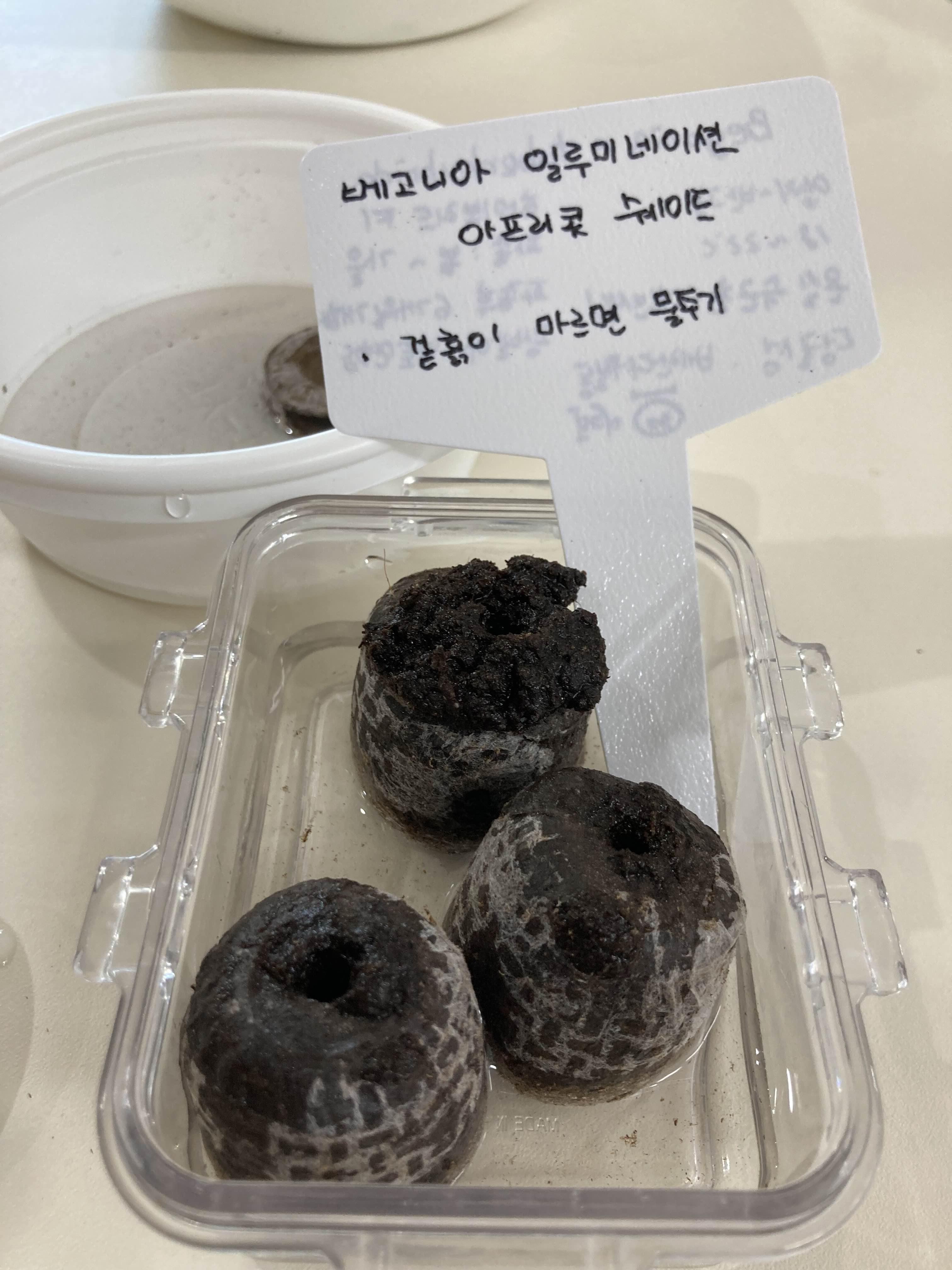 오늘 베고니아 씨앗을 파종했다! 압축상토인 지피펠렛에 씨앗을 뿌렸는데, 왜 이렇게 하라고 하는지 알것 같더라 ㅎㅎㅎ;;;; 실수로 물에 닿으니, 바로 코팅제가 녹으면서 씨앗이 안보여...흥..ㅠ