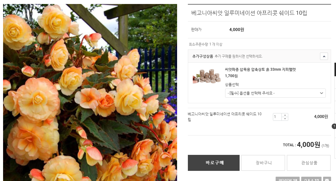 품종명: 베고니아 일루미네이션 아프리콧 세이드