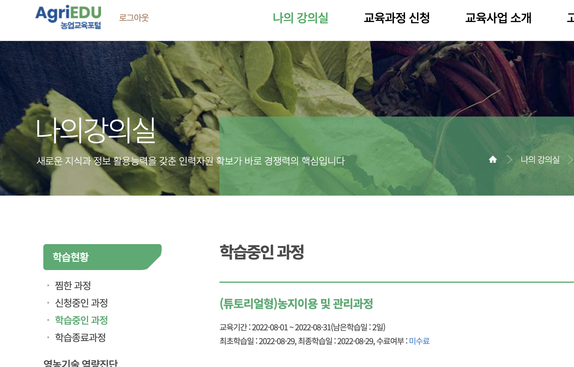제가 듣고있는 교육은 농업교육포털 입니다.