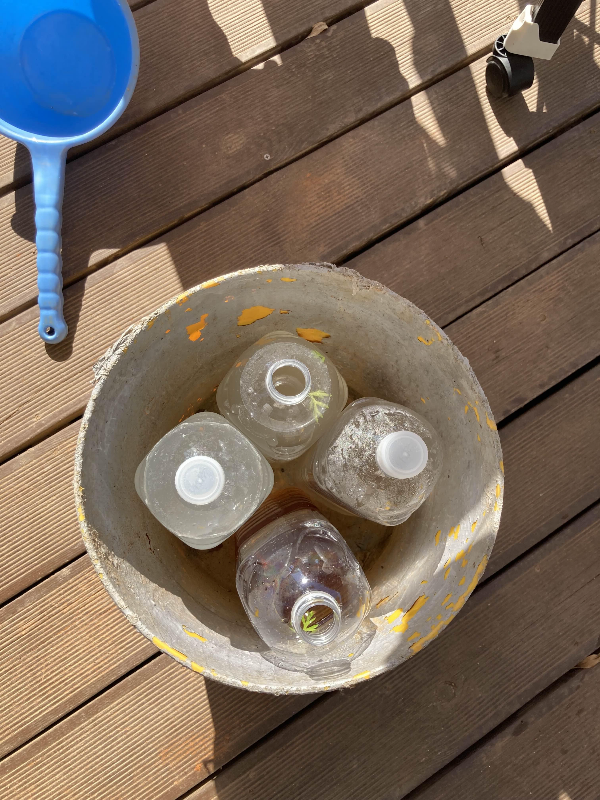 전날 모아뒀던 쌀뜬물, 채소 씻은 물을 가지고 나왔다.