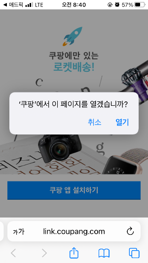 4. '쿠팡'에서 이 페이지를 열겠습니까? -> '열기' 선택!