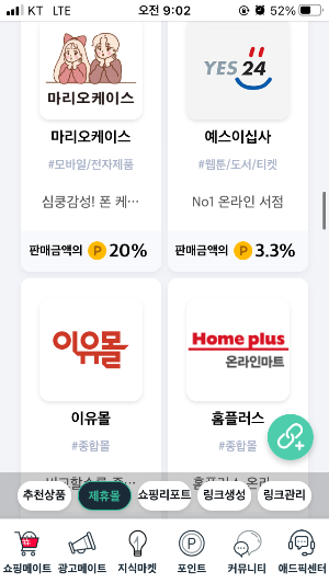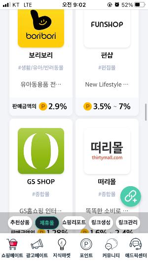 쇼핑메이트 -> 제휴몰 -> (제휴몰 선택)
