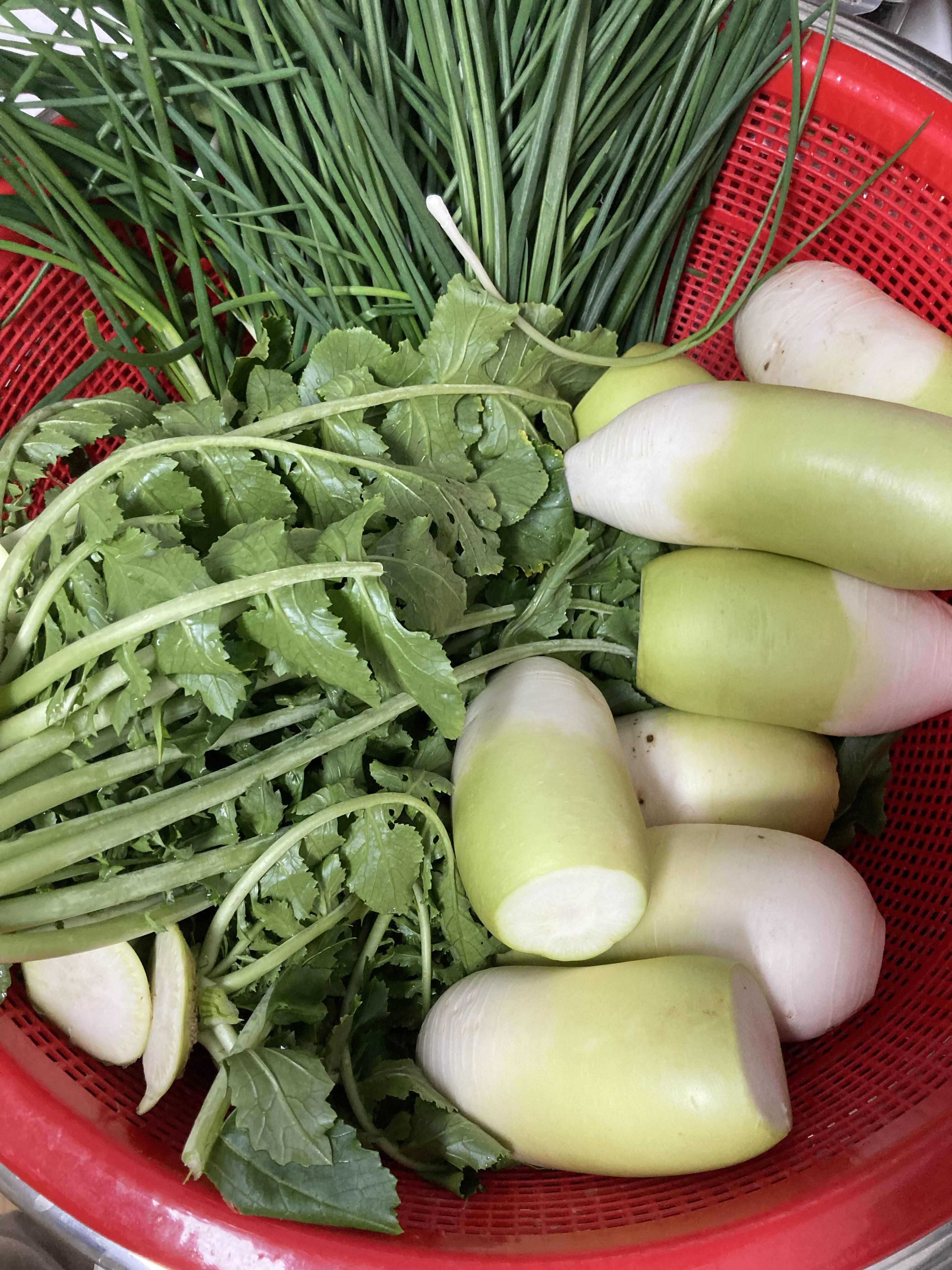 소금물에 배가 (노란속) 보이도록 차곡차곡 쌓아둔다 맨위에 물밖으로 나오는 것들은 모두 뿌리부분위에 소금을 뿌린다