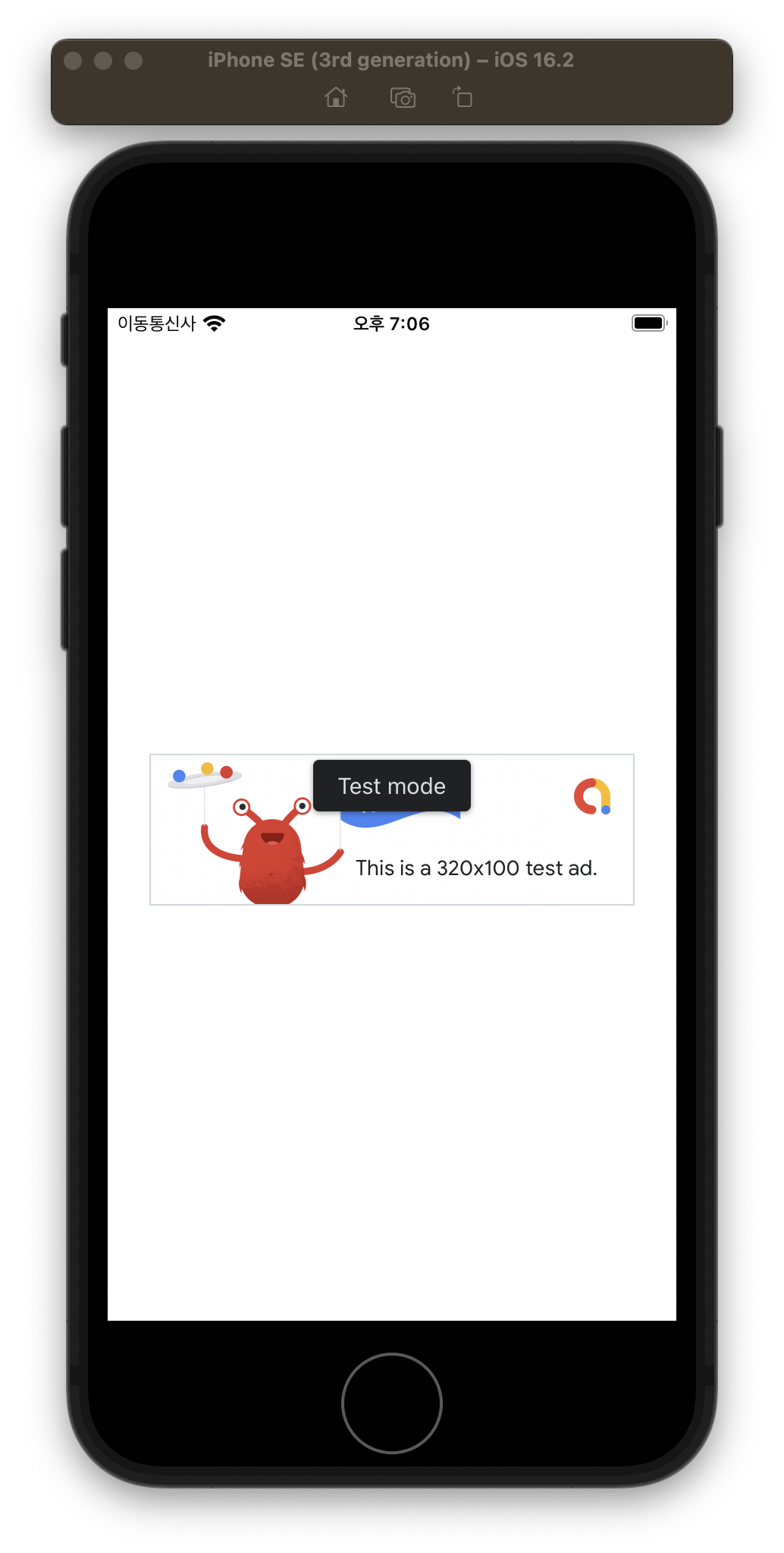 위 예제는 테스트를 위한 devlopment 빌드이며, Expo go 를 사용한다면 Admob을 볼 수 없습니다. 왜냐하면 native modules와 link e되지 않았기 때문입니다.