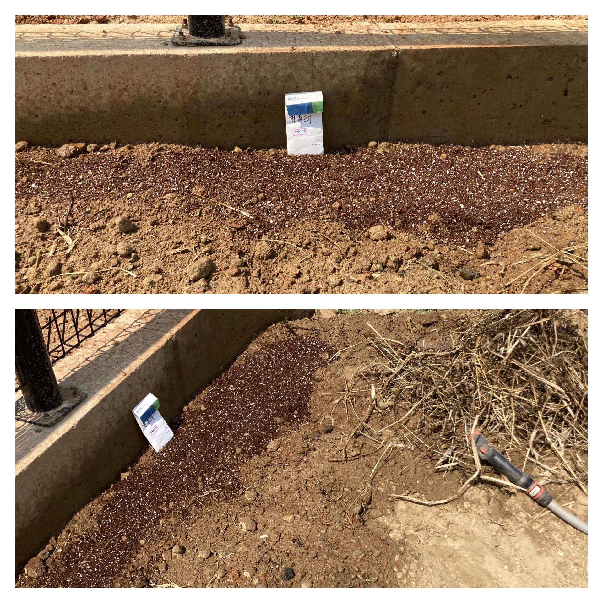 싹트기 전에는 비닐을 계속 덮어두고, 싹이 튼 뒤에는 낮에 걷고 밤에 덮어야 광합성을 하며 자랄 수 있다. 흙이 마르지 않게 아침과 저녁으로 분부를 해주고 있다.
