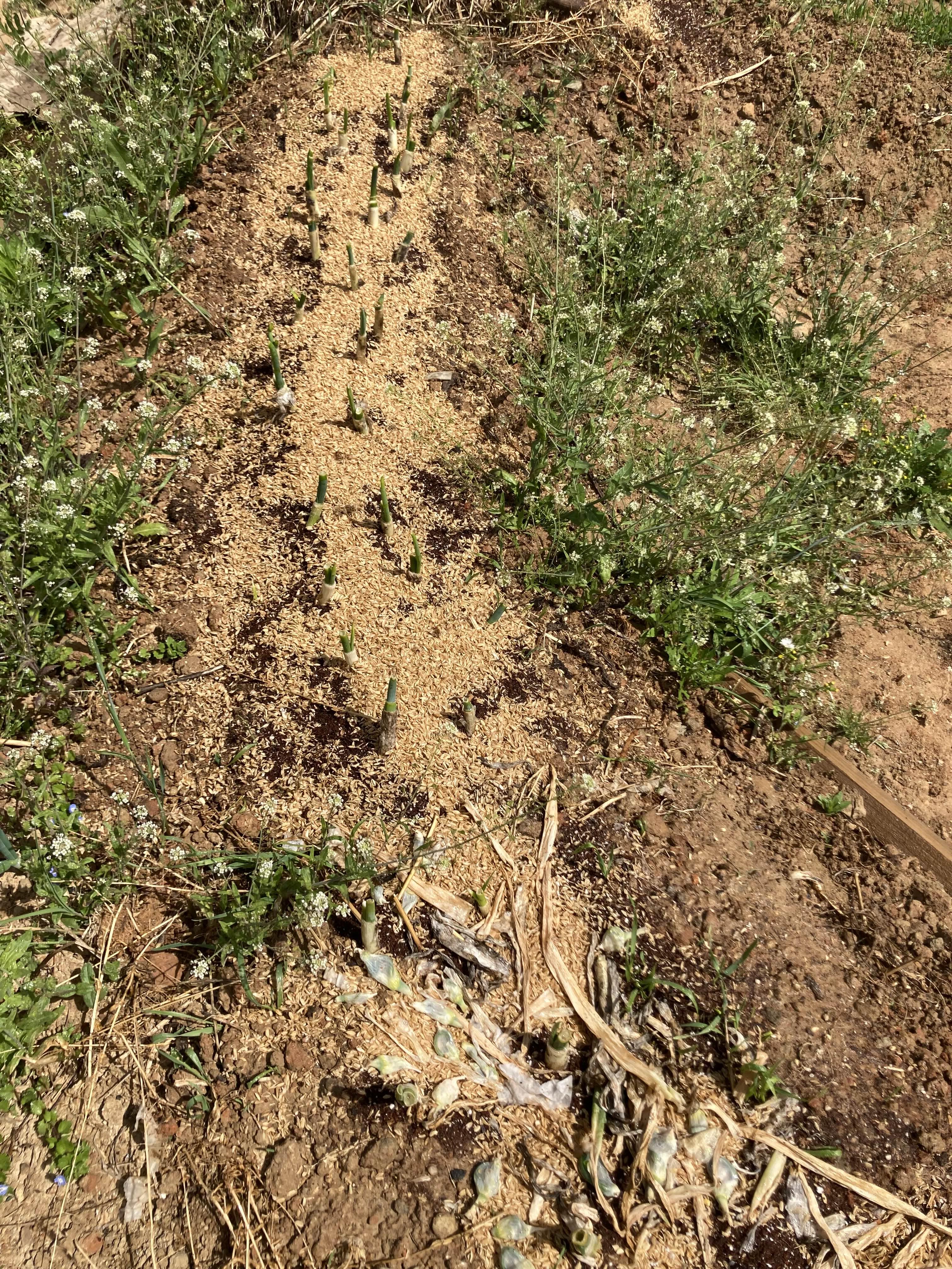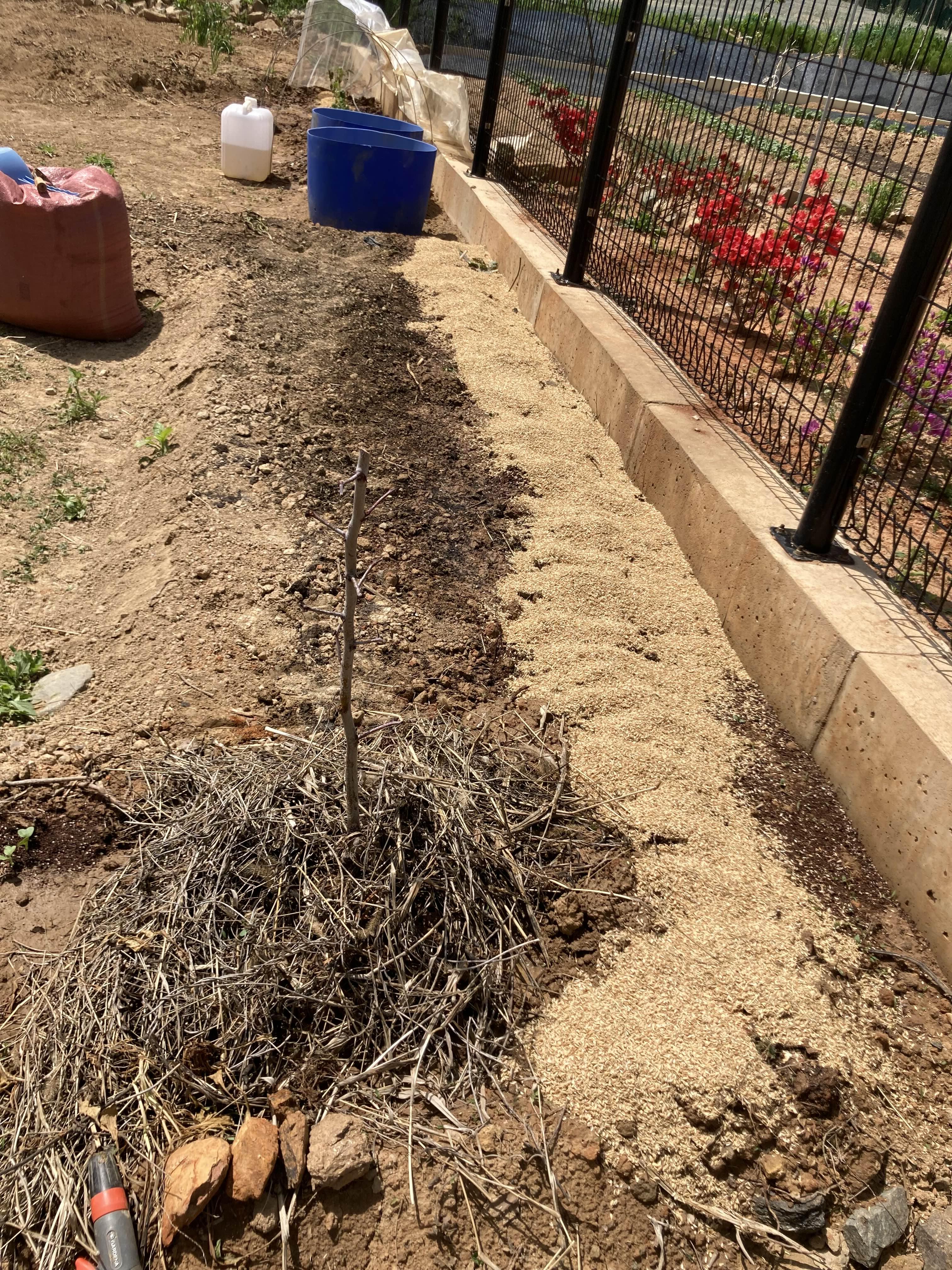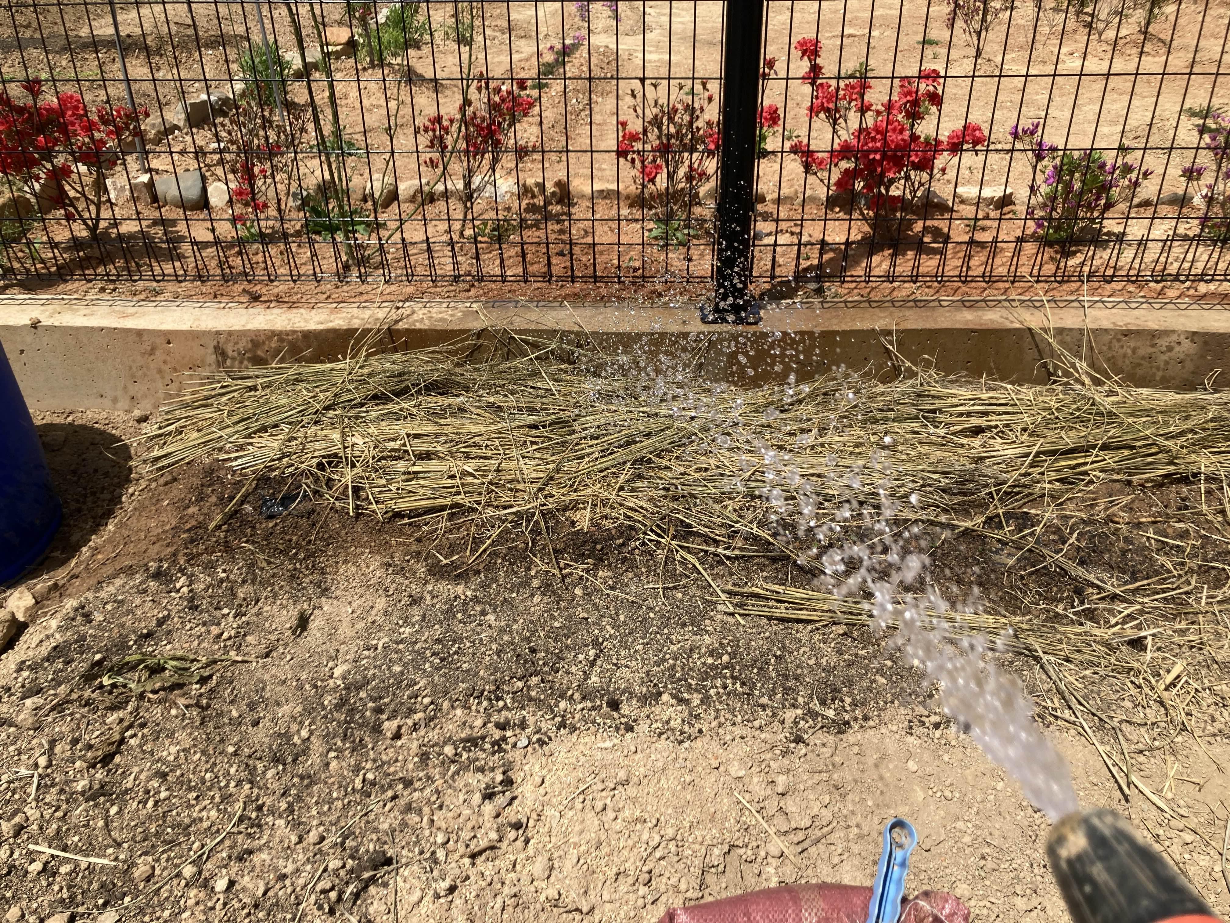 물을 한번 준 뒤 왕겨를 덮어주었다. 이제 이 생강들은 자라서 가을에 거두리라.