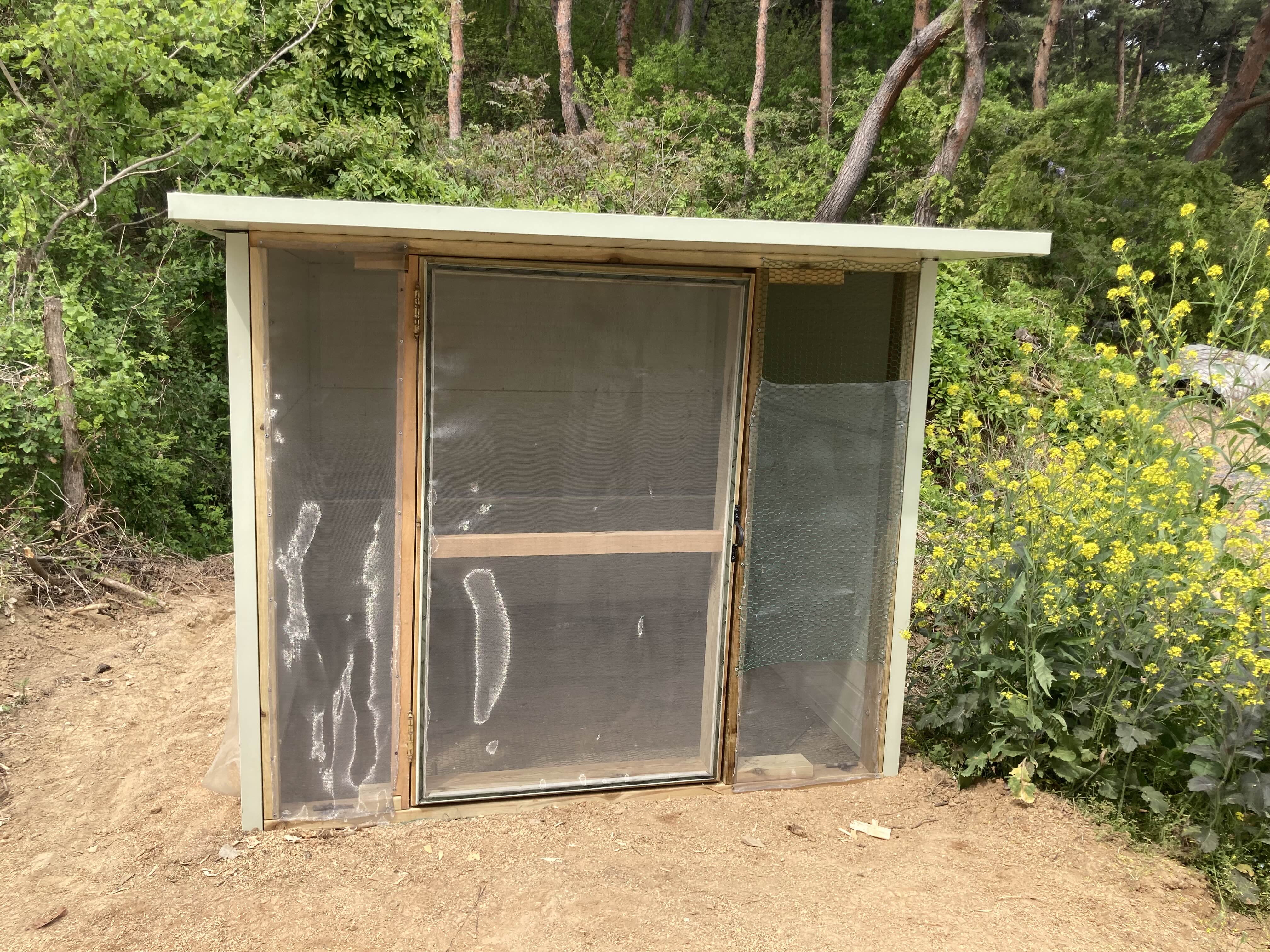 문에 방충망을 사용했습니다 쥐와 뱀이 들어오지 못할 사이즈라면 어떤것이라도 좋습니다.
