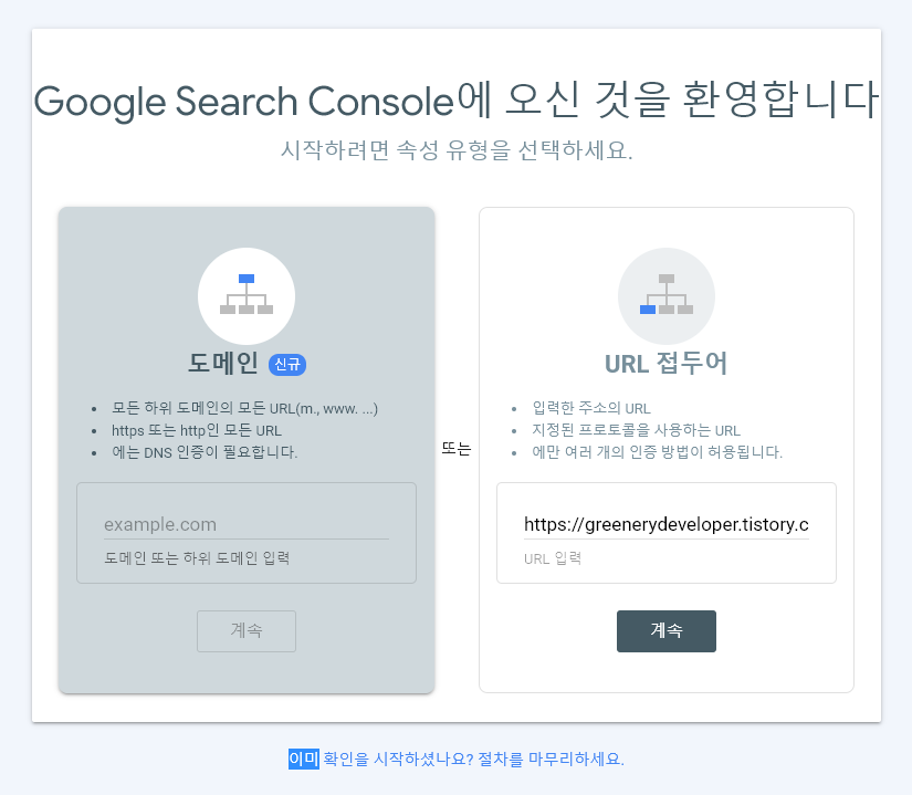 본인의 경우 블로그(사이트)주소를 https://greenerydeveloper.tistory.com/ 이렇게 입력했다.