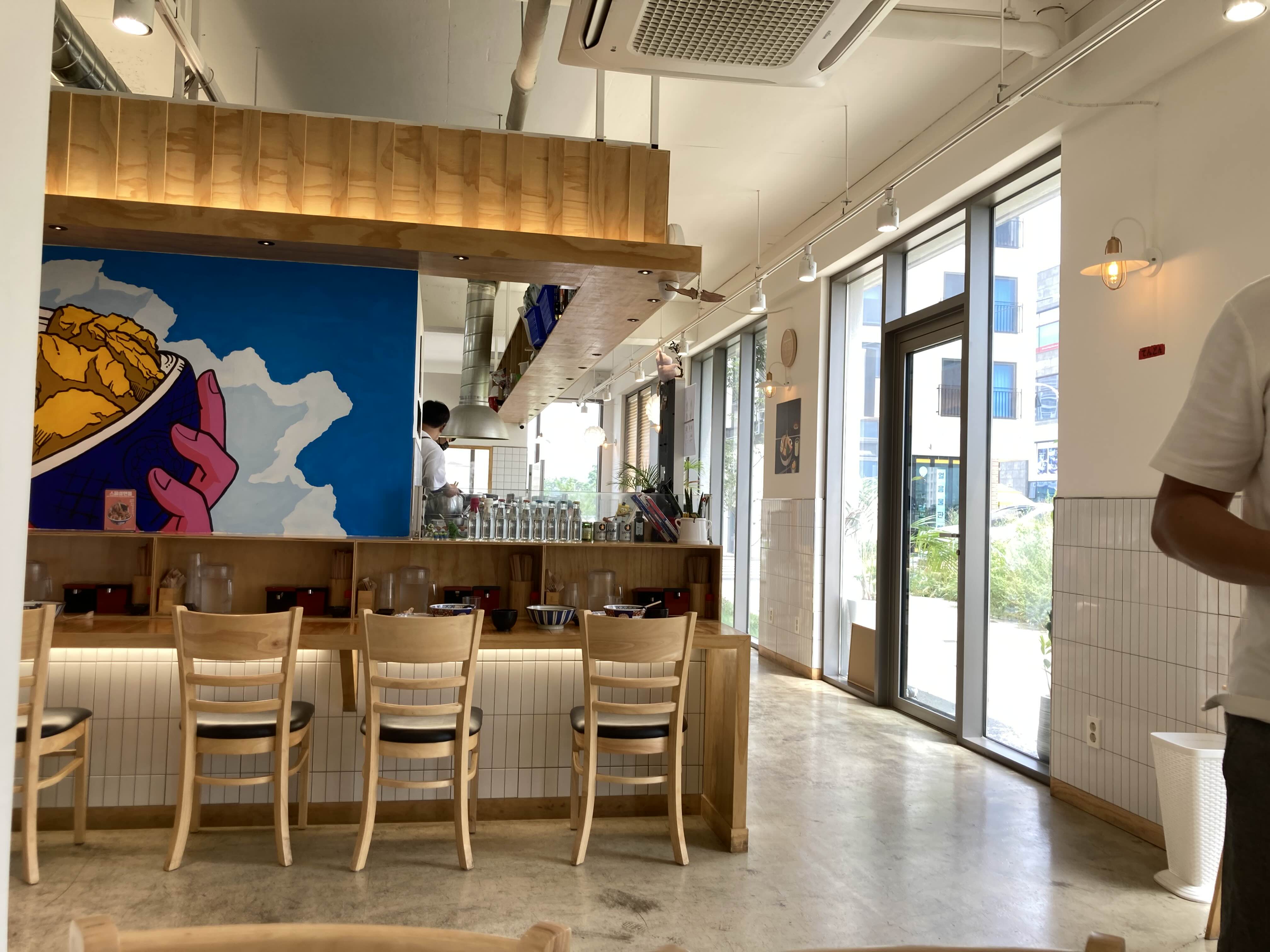 제가 간 시간은 평일 점심시간이라 회사원들이 삼삼오오 들어오더라구요. 젊은층이 많아서 그런지 매장은 밝고 깨끗하게 인테리어가 되어있지만 가족식사자리로는 어려울 듯 합니다. 소음이나 환기잘 안되는 것 땜시 ㅠ