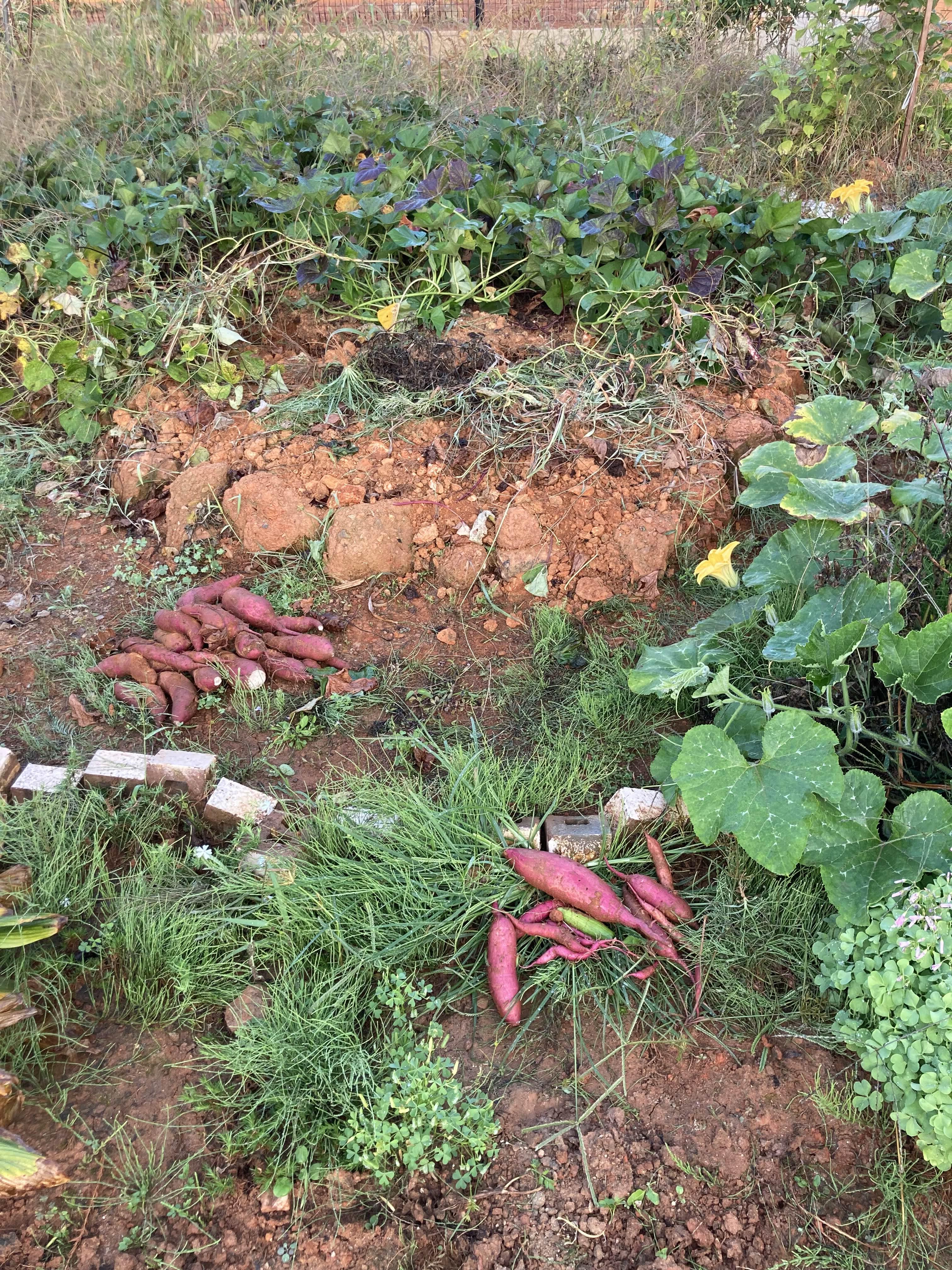 고구마 두둑이 두개인데 거름 섞은 황토흙에서 캐봤다(엄청 맛있는 하얀 밤고구마가 되었습니다)